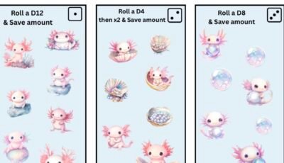 Meet the Axolotl Box Savings Challenge. Perfect for anyone looking to save effortlessly while enjoying a whimsical journey with charming underwater cuties! Roll your favorite die—D4, D6, or others—and save the rolled amount for each delightful Axolotl icon. It’s entertaining, rewarding, and full of surprises.